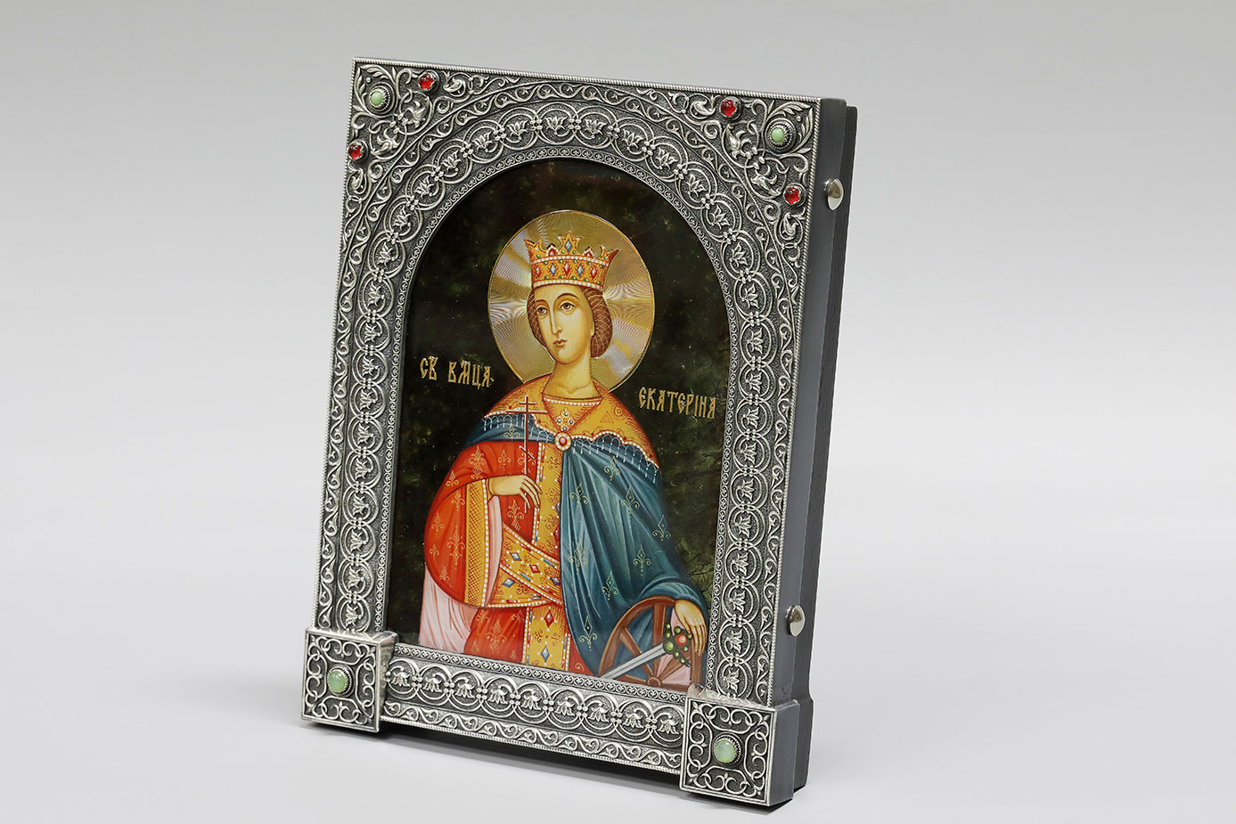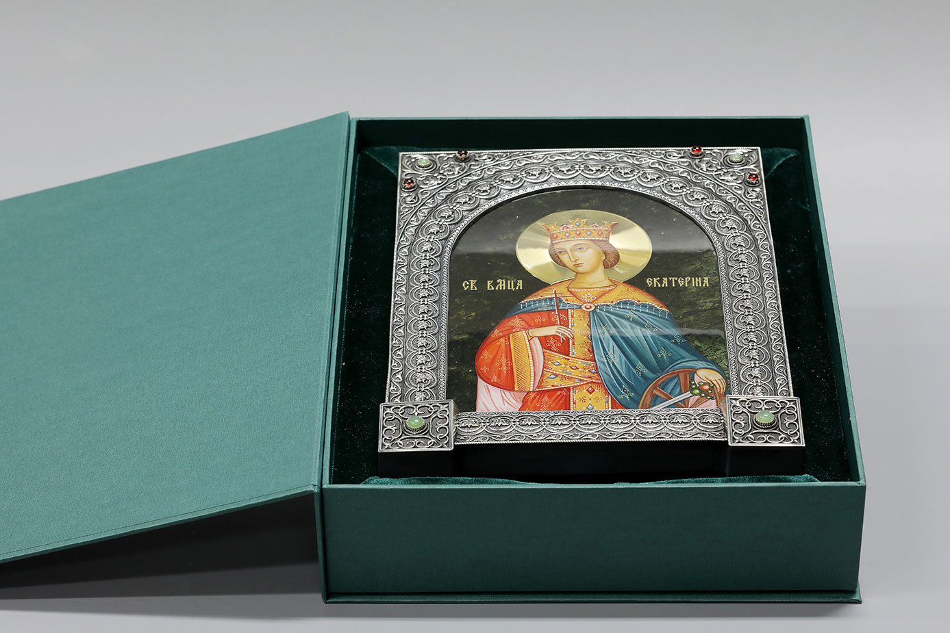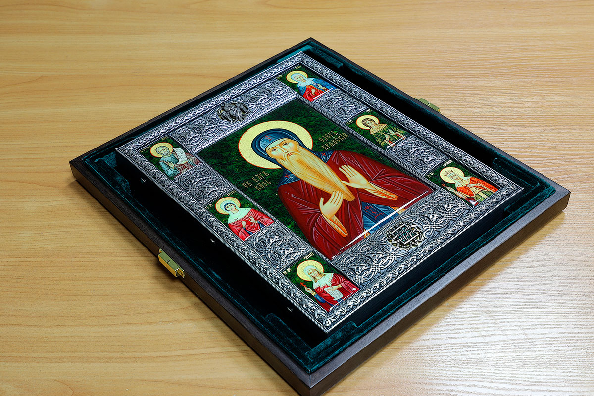 Кроме икон представленных в каталоге, мы производим изделия, более высокого, представительского уровня. К этим позициям, у нас индивидуальный подход. Потенциальный заказчик, высказывает свои пожелания, мы делаем проект, согласовываем его. Составляем смету, запускаем в призводство.