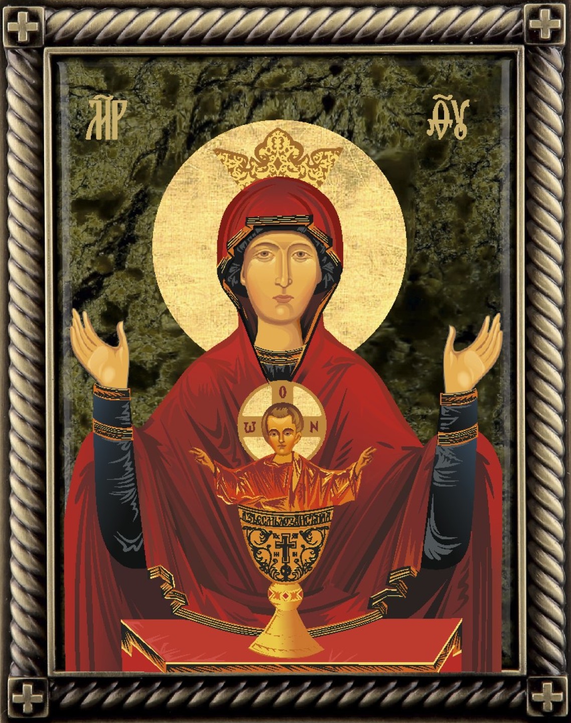 Икона Божией Матери «Неупиваемая Чаша» почитается в Русской православной церкви как чудотворная. Чаша с благословляющим Богомладенцем – это неупиваемая,