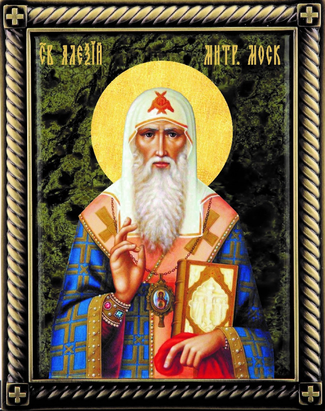 Святитель Алексий родился в 1292 году в Москве. Господь рано открыл юноше его высокое предназначение, и в пятнадцать лет он ушел в монастырь, где провел более двадцати лет в строгих иноческих подвигах. Выйдя из затвора, начались его великие дела. Св. Алексий - основоположник Московского кремля, нескольких монастырей, в т.ч. Чудова монастыря. Поддерживал дипломатические отношения с Ордой, где совершил чудо исцеления ханши Тайдулы – он вернул ей зрение.