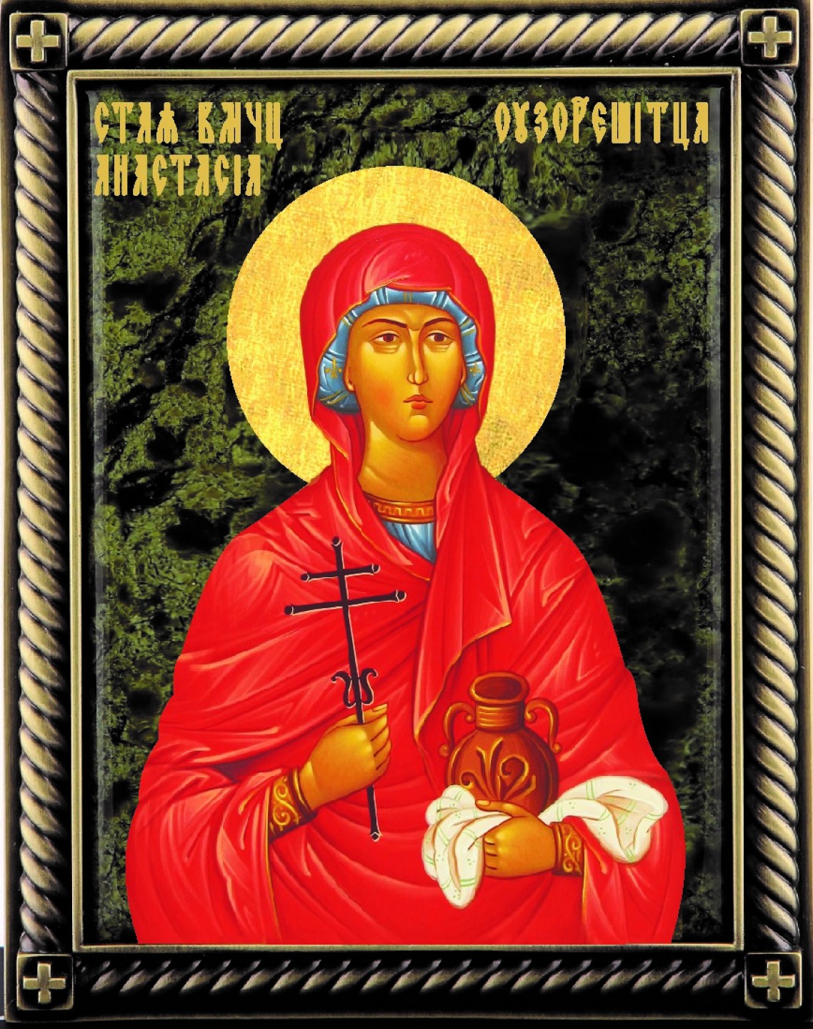 Имя святой переводится с греческого как «воскресение, возвращение к жизни». Святая Анастасия жила в начале третьего века, была знатного происхождения. Отец - сенатор-язычник, мать - тайная христианка. Все свое немалое состояние она раздала бедным, выкупала христиан из тюрем, оплачивала лечение. Спасение, через муки, помощь в избавлении от страданий и воскрешение к небесной жизни через служение Богу, - таков путь праведника, который освещает дорогу и ведет за собой других людей сквозь полную соблазнов мирскую жизнь.