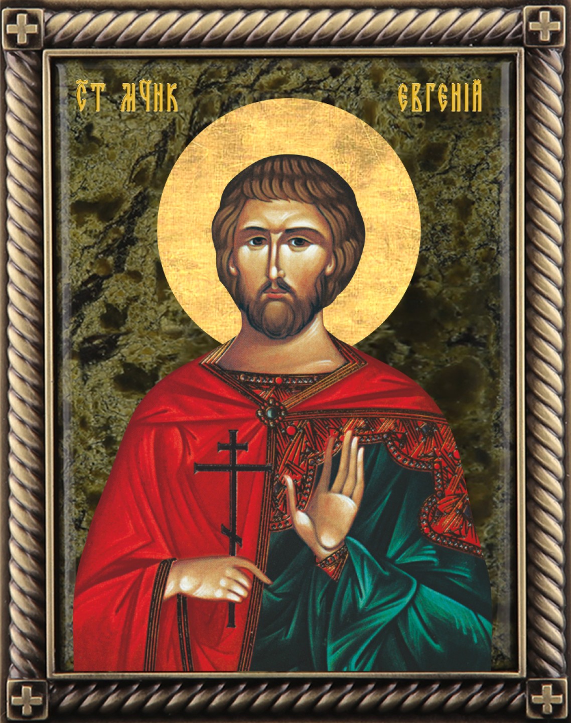 Святой мученик Евгений Севастийский пострадал за открытое вероисповедание христианства вместе со святыми мучениками Евстратием, Авксентием, Мардарием и Орестом во время христианских гонений. Увидев мучения своих друзей, их смелость, терпение, святой Евгений отказался повиноваться римским властям, открыто заявил о своей вере и был казнен.