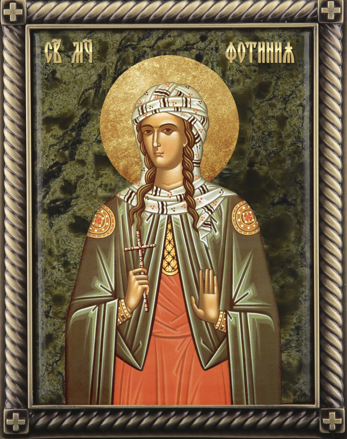 Святая Фотиния плыла на корабле, который попал в шторм. Только лишь она уцелела из всех пассажиров, сумев ухватиться за доску, на которой и приплыла к скале. Именно здесь подвизался большой молитвенник блаженный Мартиниан. Святая Фотиния осталась одна и стала вести подвижническую жизнь. Она день и ночь восхваляла Господа. В посте и молитве прожила 6 лет, после чего она скончалась.