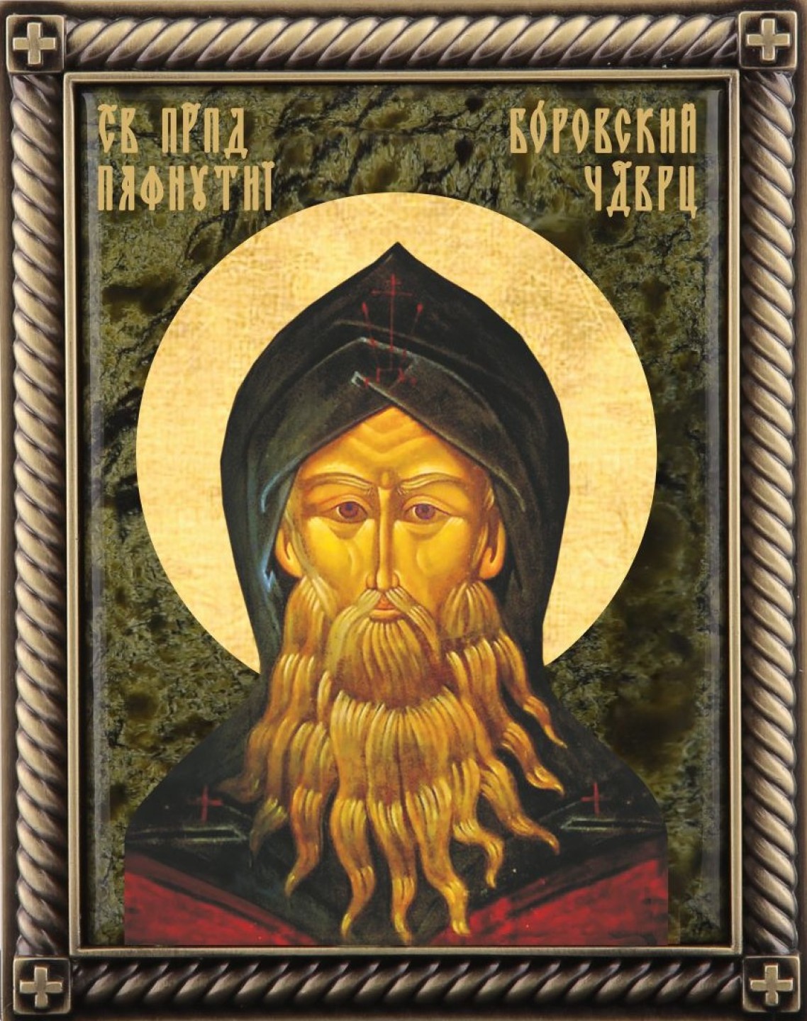 Преподобный Пафнутий был последователем прп. Сергия Радонежского, а родился он в 1394г. в селе Кудинове близ Боровска. В 20 лет принял монашеский постриг, который длился более 60 лет. Став игуменом монастыря, Преподобный подавал пример братии, ведя строгую жизнь: келья его бы¬ла бед¬нее всех, из пищи брал худшее. В понедельник и пятницу не вкушал совсем, а в среду держался сухоядения. Из общих работ избирал самые тяжелые: рубил и носил дрова, копал и поливал огород, в то же время первым приходил на службу. Пафнутий пользовался всеобщей любовью.