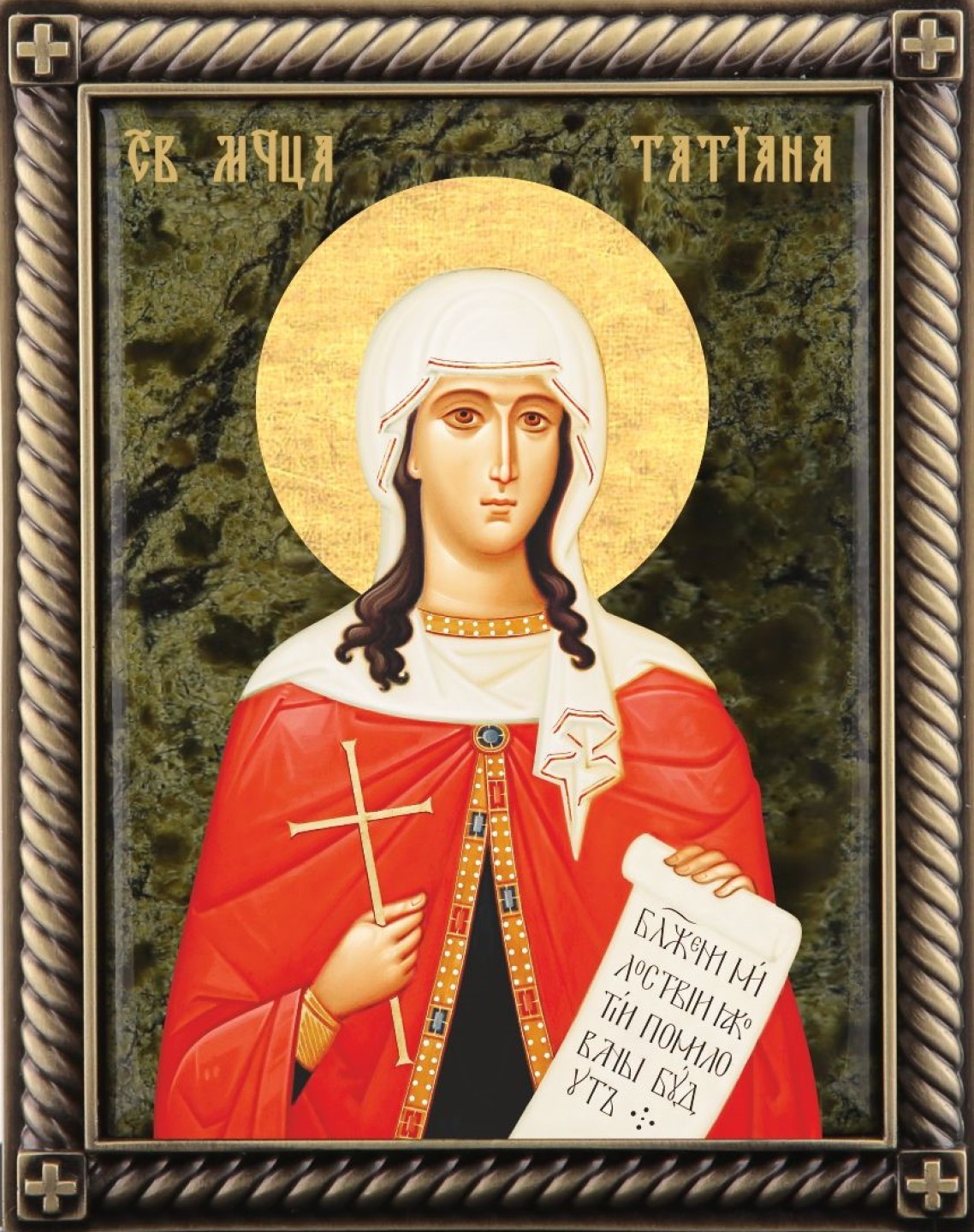Свя¬тая Та¬ти¬а¬на бы¬ла до¬че¬рью бо¬га¬то¬го рим¬ля¬ни¬на и бы¬ла вос¬пи¬та¬на им в хри¬сти¬ан-ской ве¬ре. Ко¬гда о¬на повзрослела, ста¬ла рав¬но¬душ¬на к бо¬гат¬ству и иным бла¬гам и воз-лю¬би¬ла ду¬хов¬ный об¬раз жиз¬ни. Святая Татиана пострадала в Риме в III веке. Она стала одной из первых женщин рукоположенных в диаконисы, то есть могла участвовать в богослужении. Поскольку сан диаконисы предполагал духовное просветительство, в христианстве ее почитают как покровительницу наук и образования, студентов и абитуриентов. Так что перед экзаменами, хорошо укрепить себя, помолившись святой Татьяне. Правда, она помогает только, когда студент хоть немного готов – лентяям святая помогать не будет, а вот поддержать на экзамене – всегда поможет!