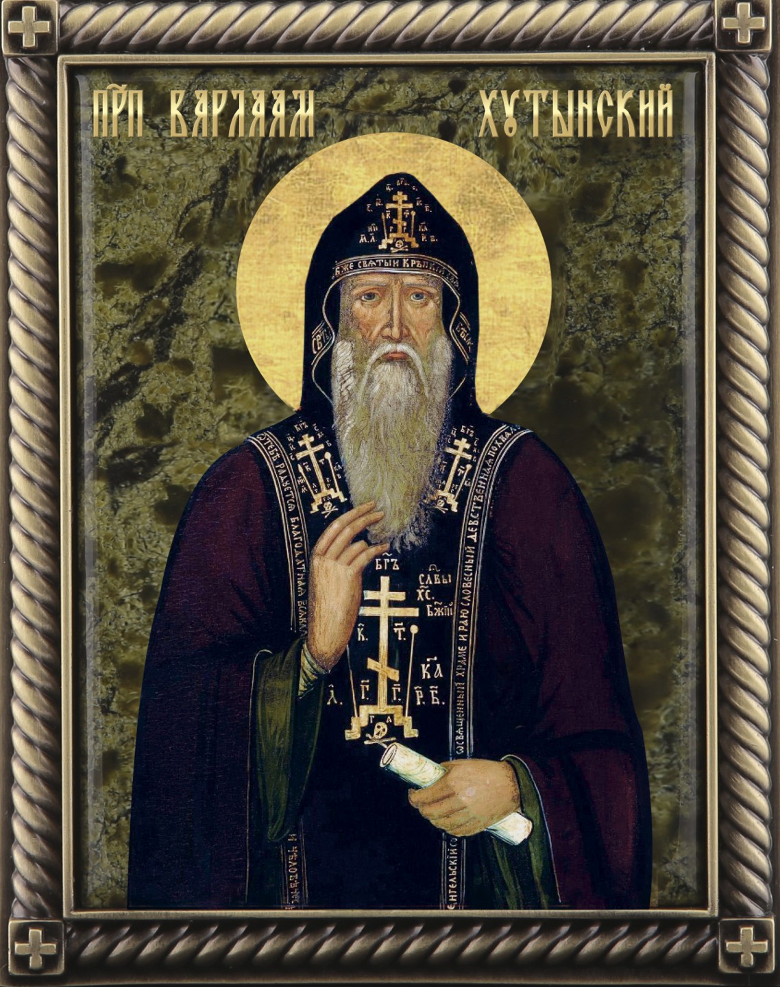 Варлаам Хутынский жил в ХII веке, был сыном знатного новгородца. В юношеском возрасте принял постриг и уединился в урочище Хутынь, где проводил суровую жизнь - молился и соблюдал строгий пост. Жил в трудах: рубил лес, пилил дрова, пахал землю. Постепенно к нему стали приходить жители Новгорода. Вскоре была воздвигнута церковь и основан монастырь. Господь ниспослал преподобному дар чудотворений и прозорливости. Преподав последние наставления братии пребывать в смирении, преп. Варлаам преставился 6 ноября 1192 года. «Я уже отхожу к Царю Небесному. Телом я покидаю вас, духом же всегда буду с вами. Блюдитесь от всякой неправды, не завидуйте, не клевещите, не гневайтесь, не отдавайте денег в рост, не судите, не предавайтесь телесным страстям. Будьте всегда кротки и ко всем относитесь с любовью".