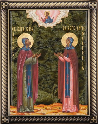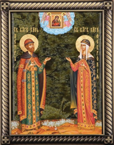 Очень подойдет, на такой день, икона Св. Благоверных Петра и Февронии, ведь они считаются образцом супружества, покровителями семьи, любви и верности.