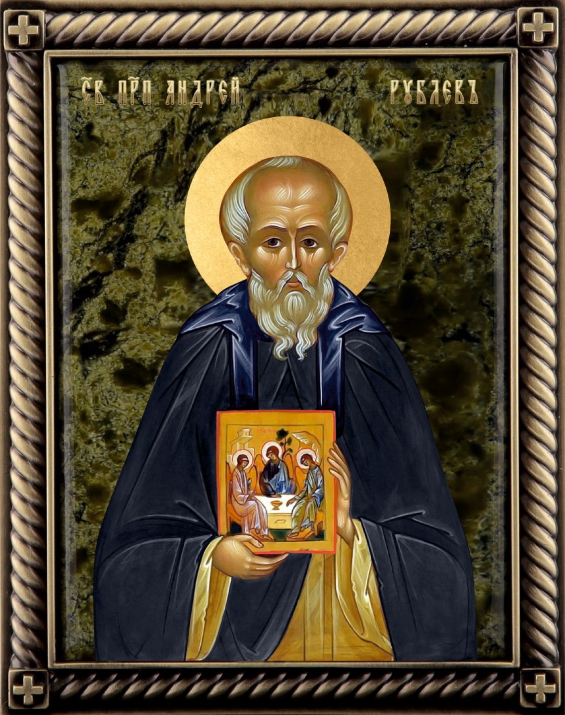 отличался мудростью. Живописному мастерству учился в Византии. Принял постриг в московском Спасо-Андрониковом монастыре. Создал шедевры иконописи, включая знаменитую "Троицу". Расписывал соборы Московского Кремля, Владимира и Звенигорода, Троицкий собор Троице-Сергиевой лавры. Его творчество - вершина русской иконописи.